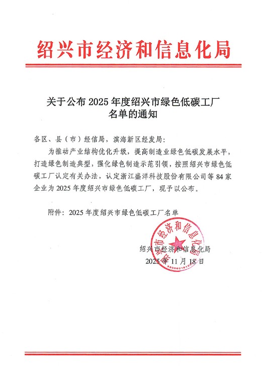 Recently, the list of green and low-carbon factories in Shaoxing City for 2025 was announced, and Zhejiang Hengjiu Transmission Technology Co., Ltd. was among those listed.